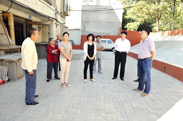 省市人大代表劉義(右一)與住區(qū)居民親切交談
